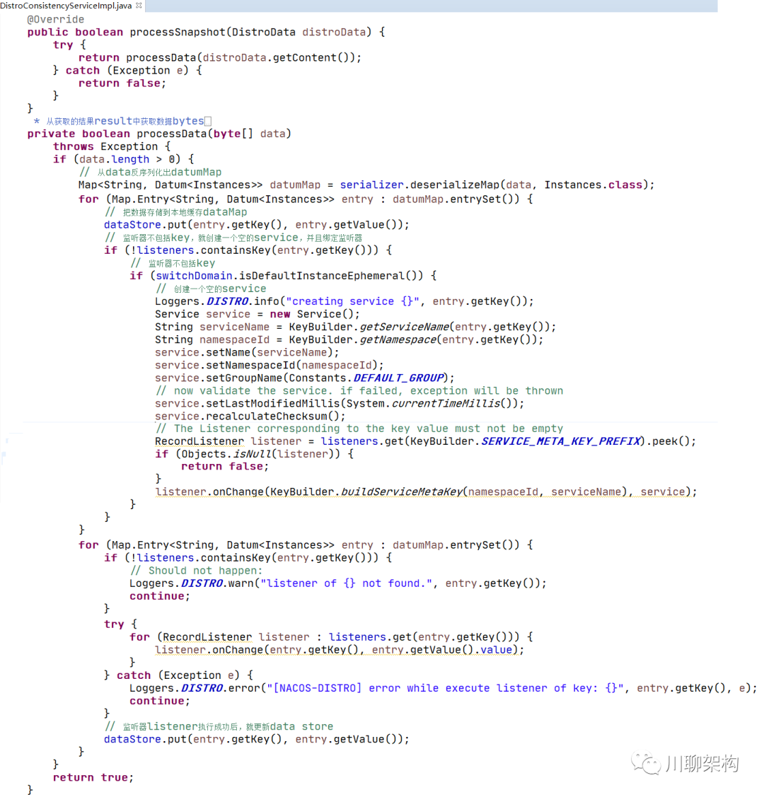 服务端在接收到客户端的服务心跳后,如果该服务不存在,则将该心跳请求当做注册请求来处理;