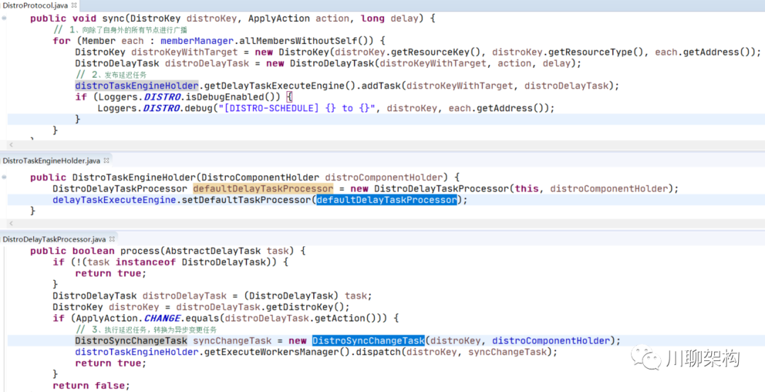 调用 DistroDelayTaskProcessor.process() 方法进行任务投递:将延迟任务转换为异步变更任务