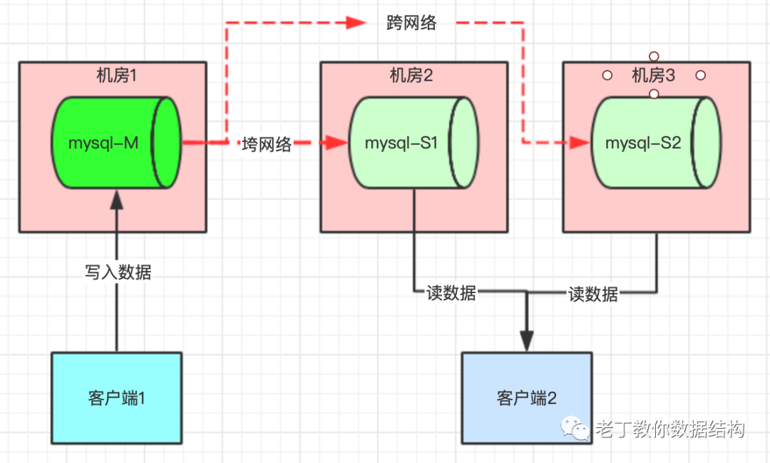 假设按照图中这个架构分析,读写做了分离,写主库读从库,分析: