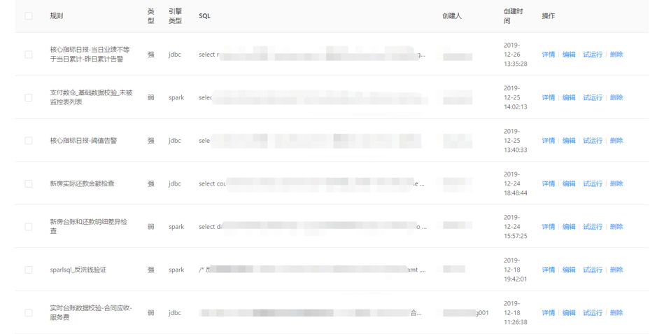 大数据平台采用了自研的数据质量平台,在数据质量平台配置 Spark SQL 或者 TiDB SQL 来校验数据是否正确。并通过将数据质量平台服务化与调度系统打通来管理数据校验逻辑之间的依赖关系。例如可以在核心日报邮件发送之前检验重要的数据是否为空,是否大于 0。另外数据质量平台支持强弱规则,如果是强规则数据校验失败则直接当前 Job 运行失败并发出相关报警,下游 Job 则会继续等待。如果是弱规则数据校验失败则只发出报警邮件下游 Job 继续运行。