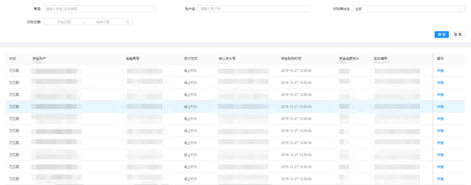 对账平台保证有逻辑上对应关系金额数据上下游能完整匹配,确保核心金额数据正确性和一致性。比如业务收款、放款数据和支付系统有逻辑上上下游的关系,则需要保证对应数据的一致性。