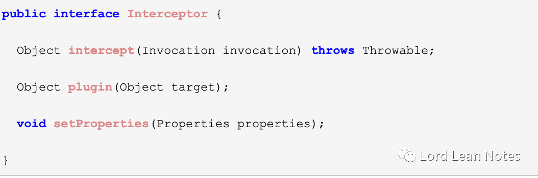 在Mybatis的Interceptor拦截器接口中的三个方法,plugin方法用来某些处理器(Handler)的构建过程,interceptor用于处理代理类的执行,setProperties用来设置拦截器属性。