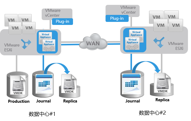 Recover Point for VMs可以实现虚拟机的实时复制,将主机房的虚拟机系统复制一份到备机房实现容灾,并可以实现虚拟机的任意时间点恢复。