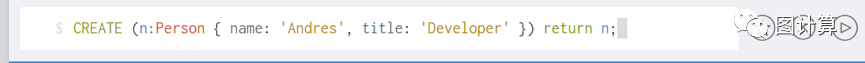 在$ 命令行中,编写Cypher脚本代码,点击Play按钮,点击创建第一个节点,