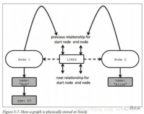 (作者:IanRobinson)一书,描述了 neo4j 的存储模型。Node和Relationship 的 Property 是用一个 Key-Value 的双向列表来保存的; Node 的 Relatsionship 是用一个双向列表来保存的,通过关系,可以方便的找到关系的from-to Node. Node 节点保存第1个属性和第1个关系ID。