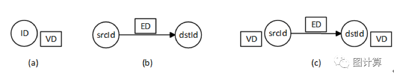 图(a)是顶点ID和顶点数据VD的集合,在存储时表示VertexTable[ID,VD];