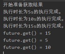 现在有三个任务,执行时间分别是 15s/10s/5s 。通过 JDK 线程池的 submit 方法提交了这三个 Callable 类型的任务。