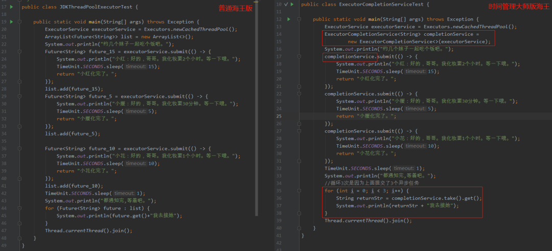 还是上面的场景,当我们引入了 CompletionService 后就显得不一样了。
