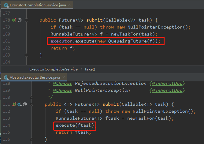 我们先对比一下 Executor 直接提交和 ExecutorCompletionService 提交的差异: