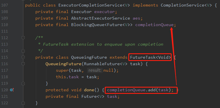 你去看这个实现,和 ExecutorCompletionService 思想是一模一样的,但是实现是有些许的不一样。