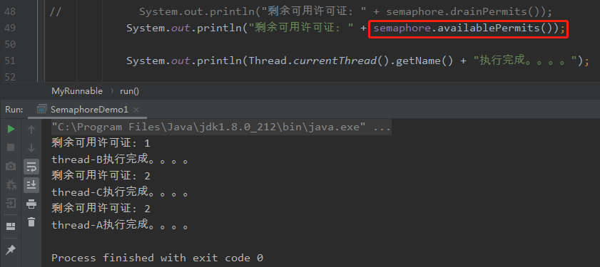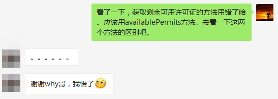 把获取剩余可用许可证的方法换为 availablePermits 方法后,正常输出: