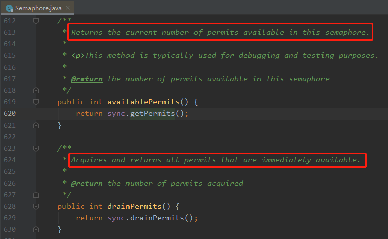 你仔细看:availablePermits 只是 return 当前可用的许可证数量。而 drainPermits 是 acquires and return,它先全部获取后再返回。