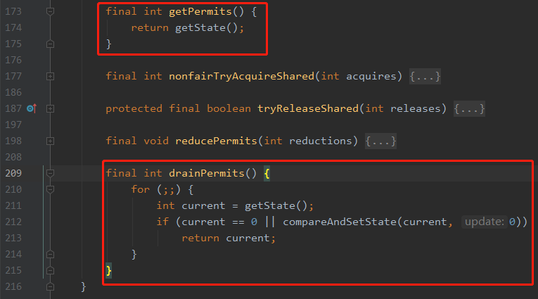 首先看 availablePermits 和 drainPermits 这个两个方法的差异: