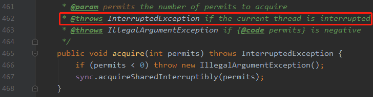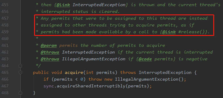 抛出 InterruptedException 后,分配给这个线程的所有许可证都会被分配给其他想要获取许可证的线程,就像通过调用 release 方法一样。