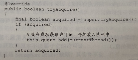 获取许可证的方法被修改成这样了(我只截取其中一个方法),获取成功后放入到队列里面: