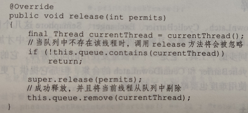 里面的 release 方法修改成这样了,执行之前先看看当前线程是否是在队列里面: