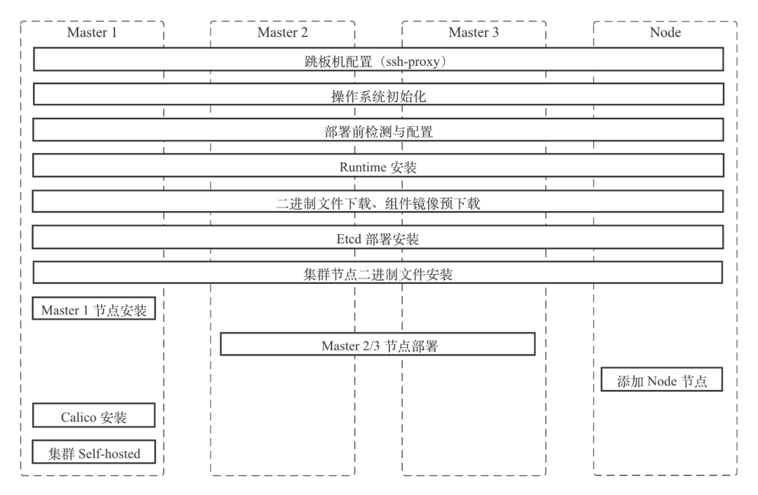 二进制文件下载以及组件镜像预下载:为了加快后续的部署效率,我们会提前并行地在需要的节点下载一些二进制文件或组件镜像