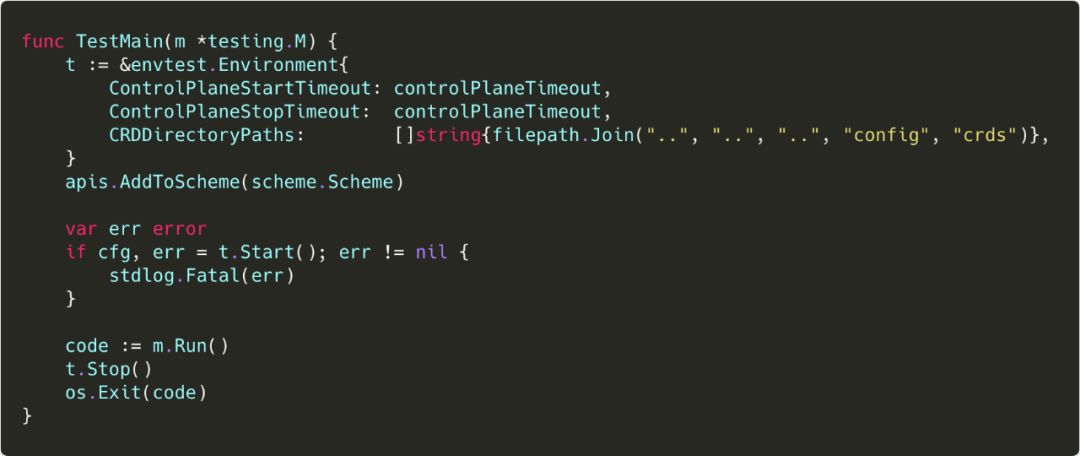 在运行时,它会启动一个真正的 API Server 和 etcd,随后把 CRD 注册到 Scheme 中并把 Operator 运行起来。但值得注意的是,它不会启动 Controller Manager,这也意味着来自 API Server 的关于 Kubernetes 资源的事件不会真正被处理。