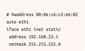 我们不能用以下代码来编辑/etc/network/interfaces.d/eth1.cfg