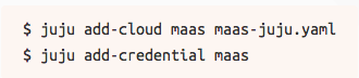 首先,我们需要做的就是将Juju连接到MAAS。我们为MAAS创建了一个配置文件作为提供商,maas-juju.yaml,使用以下代码行: