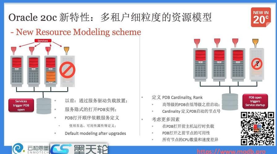 在20c中,Oracle引入了细粒度的资源模型,将负载和PDB的重要性等引入管理视角。例如,用户可以通过Cardinality和Rank定义,改变PDB的优先级,在数据库启动时,优先打开优先级别高的PDB,