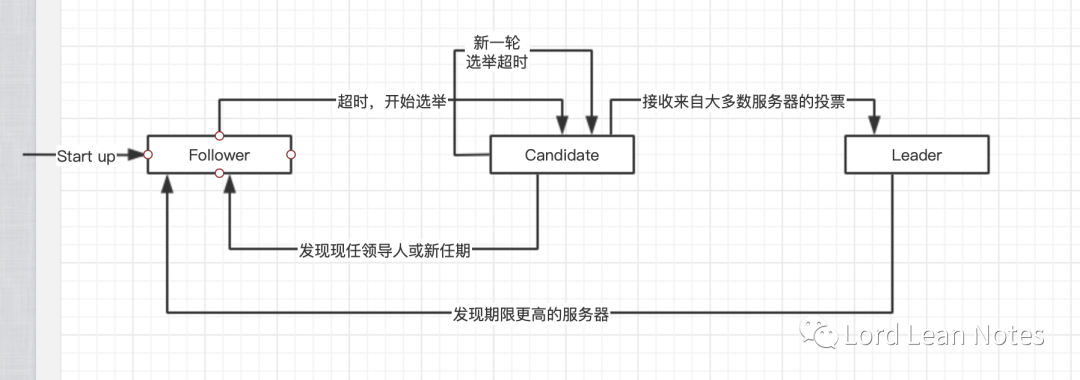 raft使用心跳机制来触发领袖选举。当服务器启动时,它们作为追随者开始。只要服务器接收到来自领导者或候选人的有效RPC,它就会保持在跟随者状态。领导者定期发送心跳到跟随者,以维护其权威。如果跟随者在称为选举超时的一段时间内没有收到任何通信。追随者就会假定没有可存活的领导人,并开始选举新的领导人。