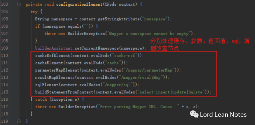 由于XMLConfigBuilder也是使用XMLMapperBuilder,所以下面来看下XMLMapperBuilder的解析细节: