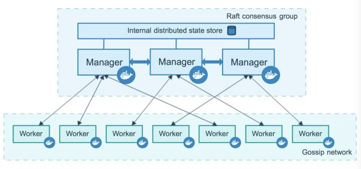 详细请阅读 《 docker之DockerSwarm的了解 》 文中对swarm的架构及组件概念做了详细的解释。