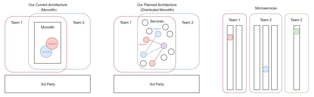 微服务另外一个好处在于,每个团队只需要完整设计自己的业务问题。而我们,作为一个和第三方完全独立的公司团队,这种重构看起来不可行。