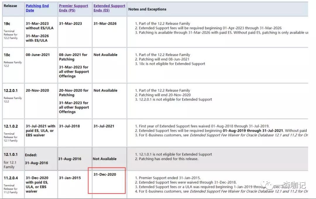 1. 11.2.0.4 的Extended Support Ends (ES)的截止时间:31-Dec-2020;