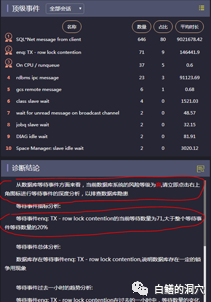 运维人员发现系统的性能模型丢分十分严重,于是立即查看风险等级评估工具的结果,获得的评估结果是风险等级“高”,同时,从等待事件上看,系统中存在大量的行锁。