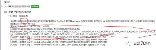 点击会话详情工具,可以查看到该会话的情况,以及执行的SQL语句,定位了引起问题的原因: