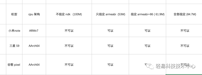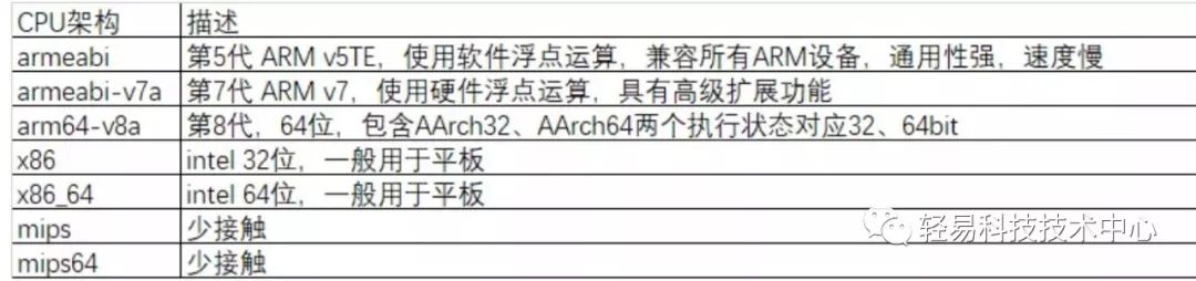 2.只适配 armeabi,因为 ARMv7 、ARMv8 还是 x86 都兼容 armeabi,但是性能都会有些损耗,例如ARMv7 支持硬件浮点运算等没法体现,x86 支持 armeabi 同样具有相应的损耗。
