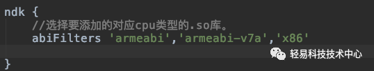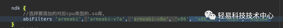 所以知道这些信息后,查看公司其他项目怎么用的, 发现其他项目, 在 build.gradle 中关于 ndk.abiFilters 都是这样写的: