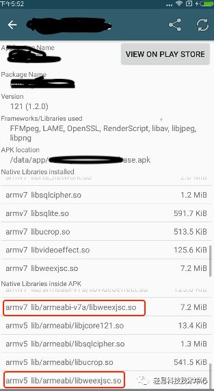 而集成私服上的 sdk 后,只在 armv5中有 libweexjsc.so 而 armv7 中是没有这个问题的。 区别找到了,那就去私服的项目中找原因