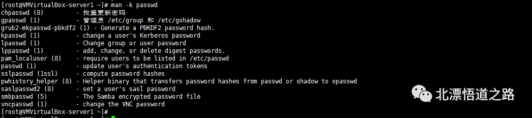 为区分不同章节中相同主题名称,man page 参考中在主题后附加上了章节编号(用括号括起)。例如,passwd(1)介绍更改密码的命令,而passwd(5)说明存储本地用户账户的/etc/passwd文件格式。