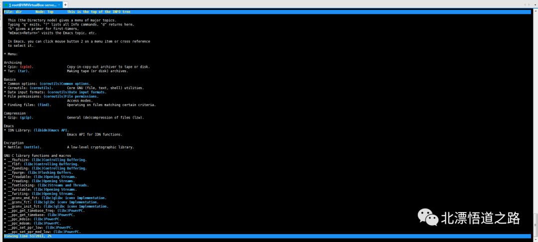 pinfo 读取器比原始的infoinfo 命令更加高级。它设计为与lynx 文本web 浏览器击键操作相符,也添加了颜色。可以通过pinfo topic 浏览特定主体的info 节点。仅输入pinfo 将显示 info 主题目录。安装了对应的软件包时,pinfo 中即可使用新的文档节点。
