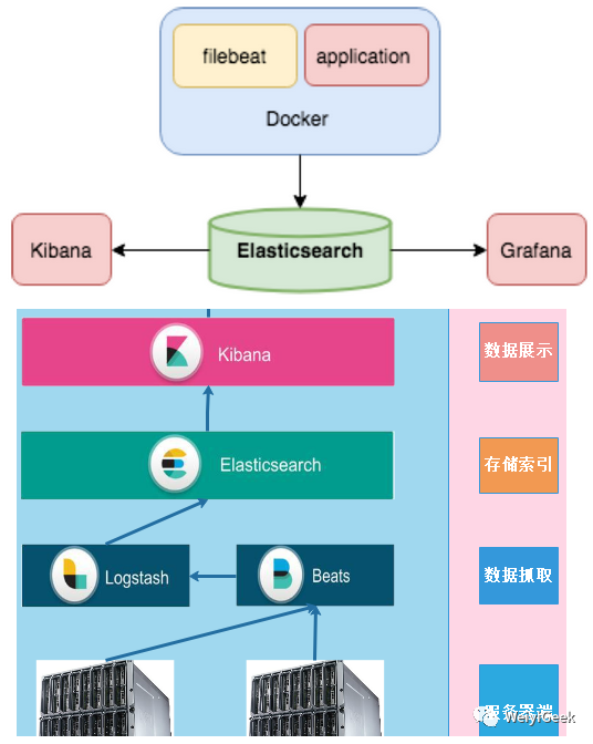 Tips : Logstash 和 Beats 有助于收集、聚合和 丰富您的数据并将其存储在 Elasticsearch 中。