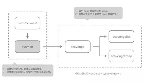 一般在golang运行完成初始化时,会创建专门的goroutine用于后台监控、定期任务,这其中也涉及到了强制垃圾回收、内存释放等任务。