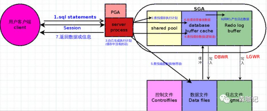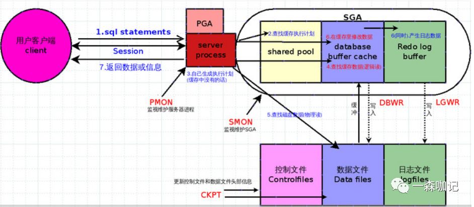 8. 修改数据会产生重做日志上面提到,日志可用来记录数据库的数据变化,对数据改动产生一定量的日志数据。这些日志是不是直接就写到日志文件中?写日志文件也是物理读,所以SGA就有个Redo log buffer,就是日志缓存,专门实时存放产生的日志数据。