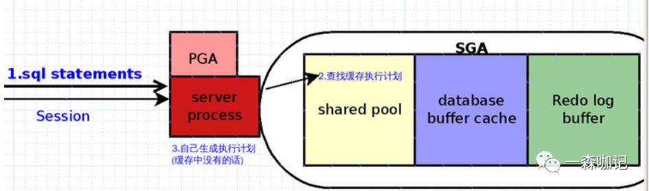 server process根据sql语句生成执行计划(execute plan)Oracle是无法直接执行sql语句的,必须先依据统计信息生成执行计划,然后Oracle就会根据较优的执行计划去执行SQL。而生成执行计划要访问许多数据库对象,是1个比较消耗服务器资源(CPU,IO,Memory)的动作。关于统计信息和执行计划的个人公众好推文,可点击如下进行了解。