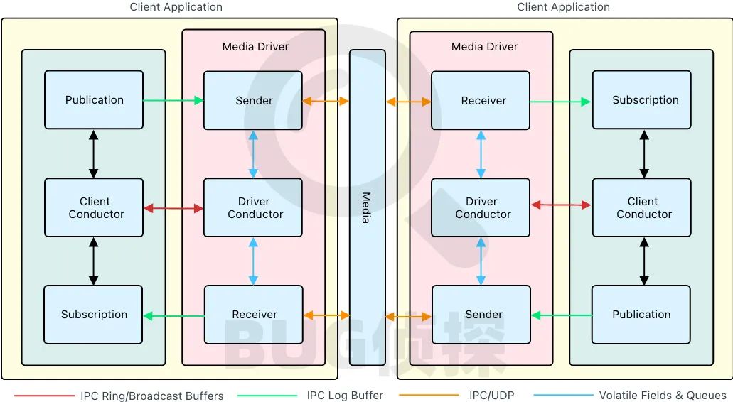 Media Driver 负责管理 publications 和 subscriptions 所使用的用来发送和接收数据的 Media(UDP或IPC)。
