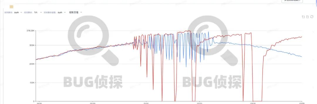 随着新Nginx监控架构的推进, Mtail的一些问题也逐渐显露了出来。事情就发生在一个普通的周四晚上,白天的时候配合sa灰度了公司一个较大的域名所属的Nginx集群20台左右机器,Mtail进程的cpu大概维持在60%~70%之间、内存在60m左右,性能也还符合预期。结果晚上下班回家洗完手刚准备拿起玩具逗娃,刷刷刷刷4条Mtail性能报警毫无防备的打乱了我逗娃的节奏,赶紧打开报警机器对应的域名数据一看,监控图线断的简直是惨不忍睹: