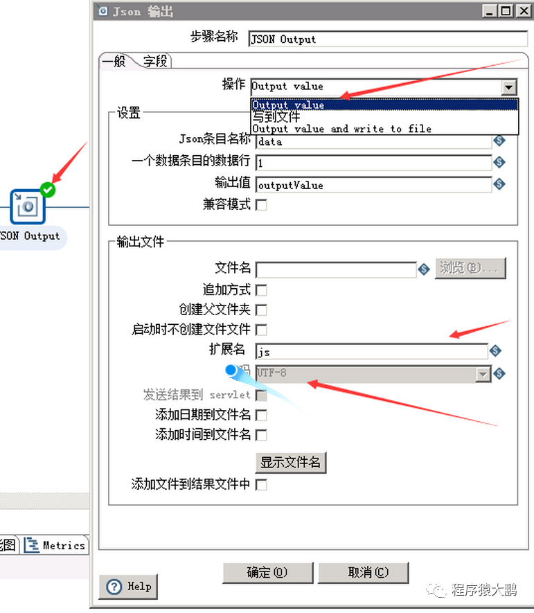5. 编辑JSON输出组件,点击【操作】选项,选择值为:Output value 。