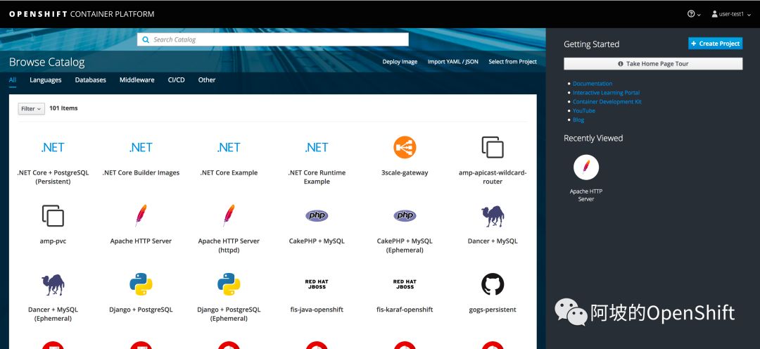 在创建好用户的情况下登录openshift,没有任何项目属于该项目,并且默认是允许用户创建项目的