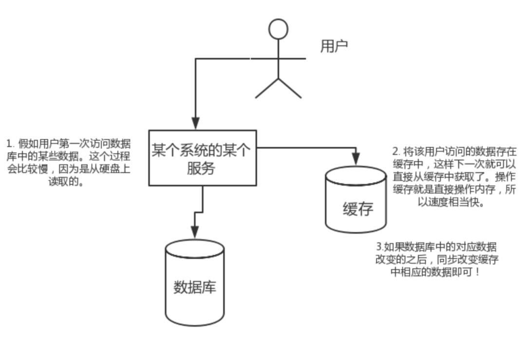 高性能:假如用户第一次访问数据库中的某些数据。这个过程会比较慢,因为是从硬盘上读取的。将该用户访问的数据存在数缓存中,这样下一次再访问这些数据的时候就可以直接从缓存中获取了。操作缓存就是直接操作内存,所以速度相当快。如果数据库中的对应数据改变的之后,同步改变缓存中相应的数据即可!