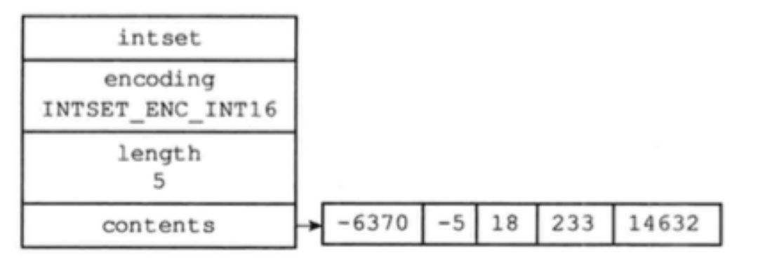 typedef struct intset {uint32_t encoding; // 决定contents保存的真正类型uint32_t length;int8_t contents[]; // 各项从小到大排序} inset;