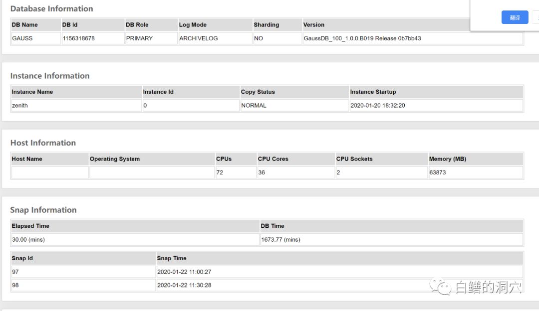 高斯100有类似AWR的机制,每隔30分钟自动采集一个SNAP。