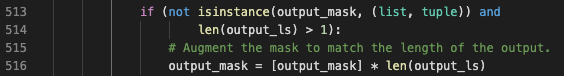但是有一个问题,就是当输出是多个tensor时,需要每个tensor有一个mask。这段代码就是做这件事儿的。为什么不用一个呢?