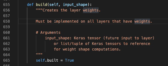 如果没有build方法,那么自定义layer时就可能在任何地方添加我们的weight,这样肯定会引发混乱,不利于大家交流代码。所以,这个build方法其实就是一个约定。